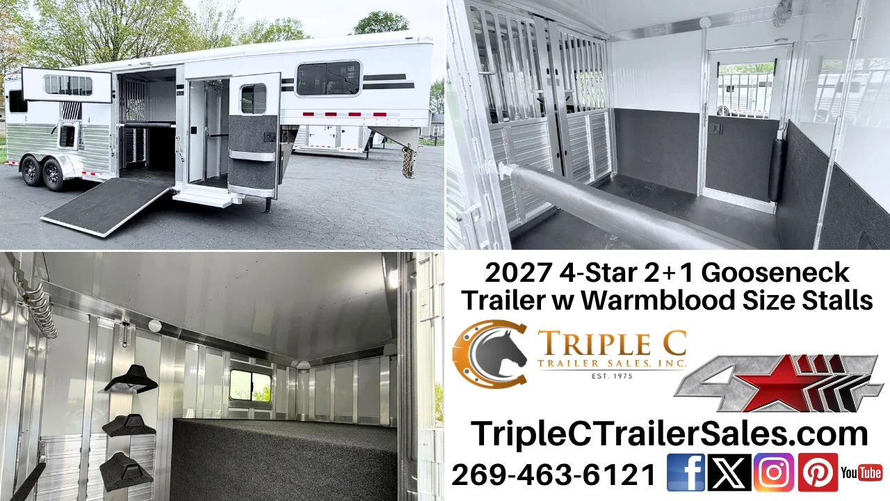 ID# TCT081 $64,900. Come on out to Triple C Trailer Sales Inc at 9136 Hagar Shore Rd. Watervliet MI 49098 to see all of the horse trailers on our lot. Our inventory changes daily! Check out and view pictures of our entire 4-Star Trailers inventory online. WE CAN SHIP NATIONWIDE!