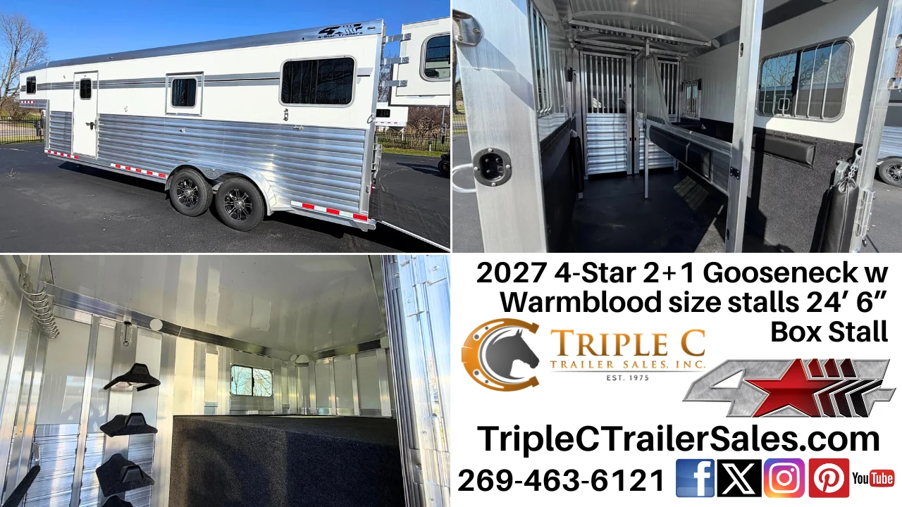 2027 4-Star 2+1 Gooseneck w Warmblood size stalls 24’ 6” Box Stall