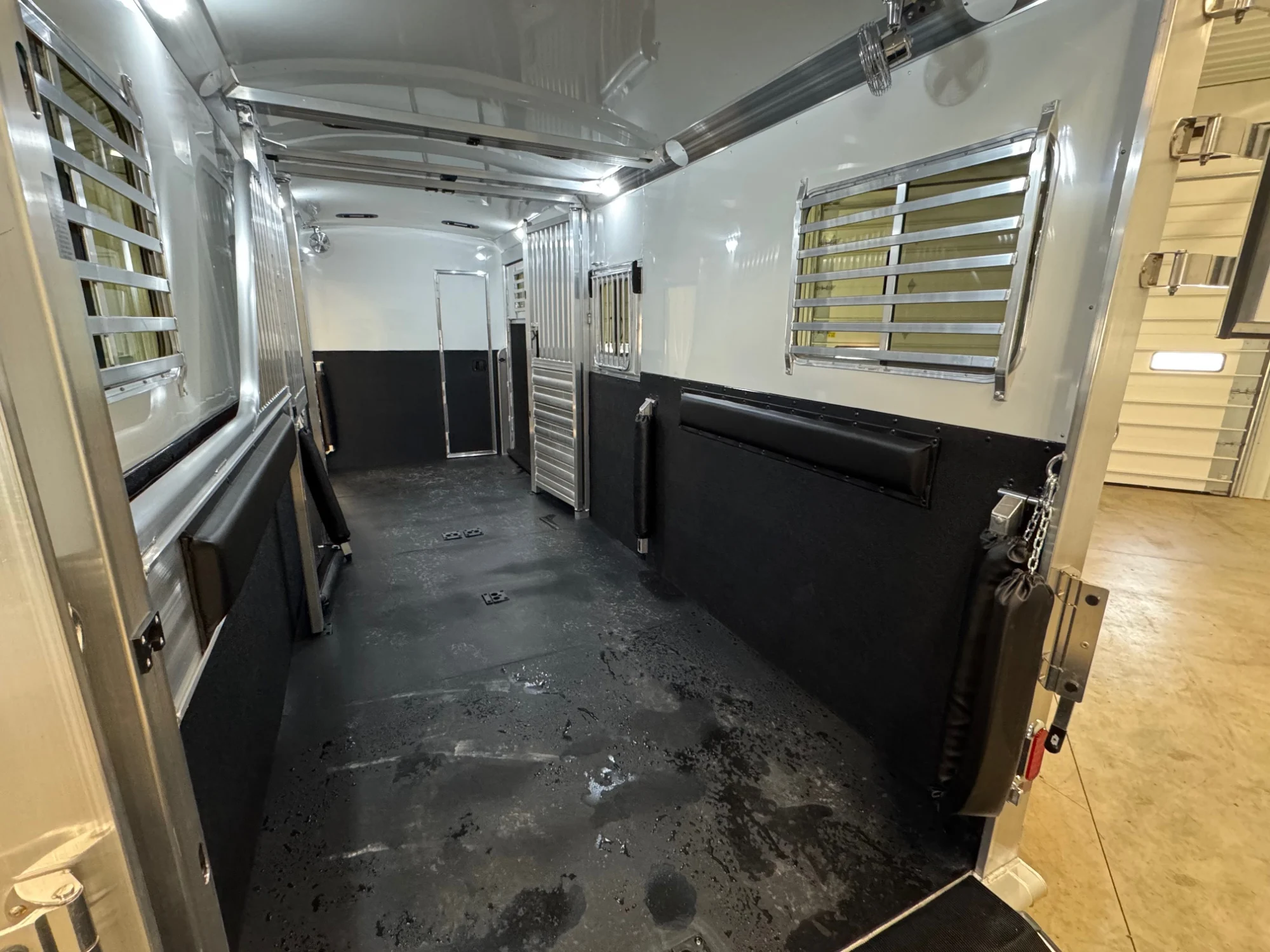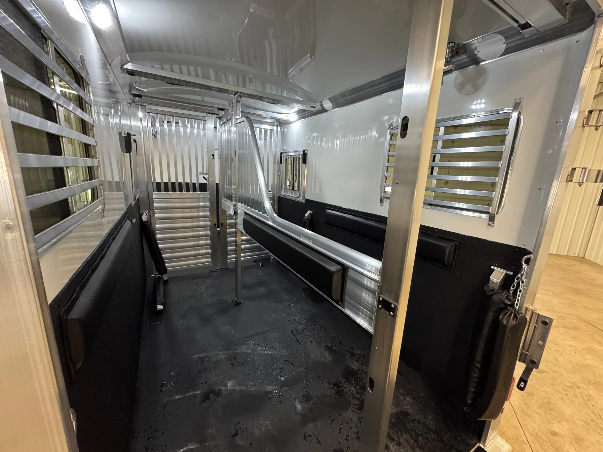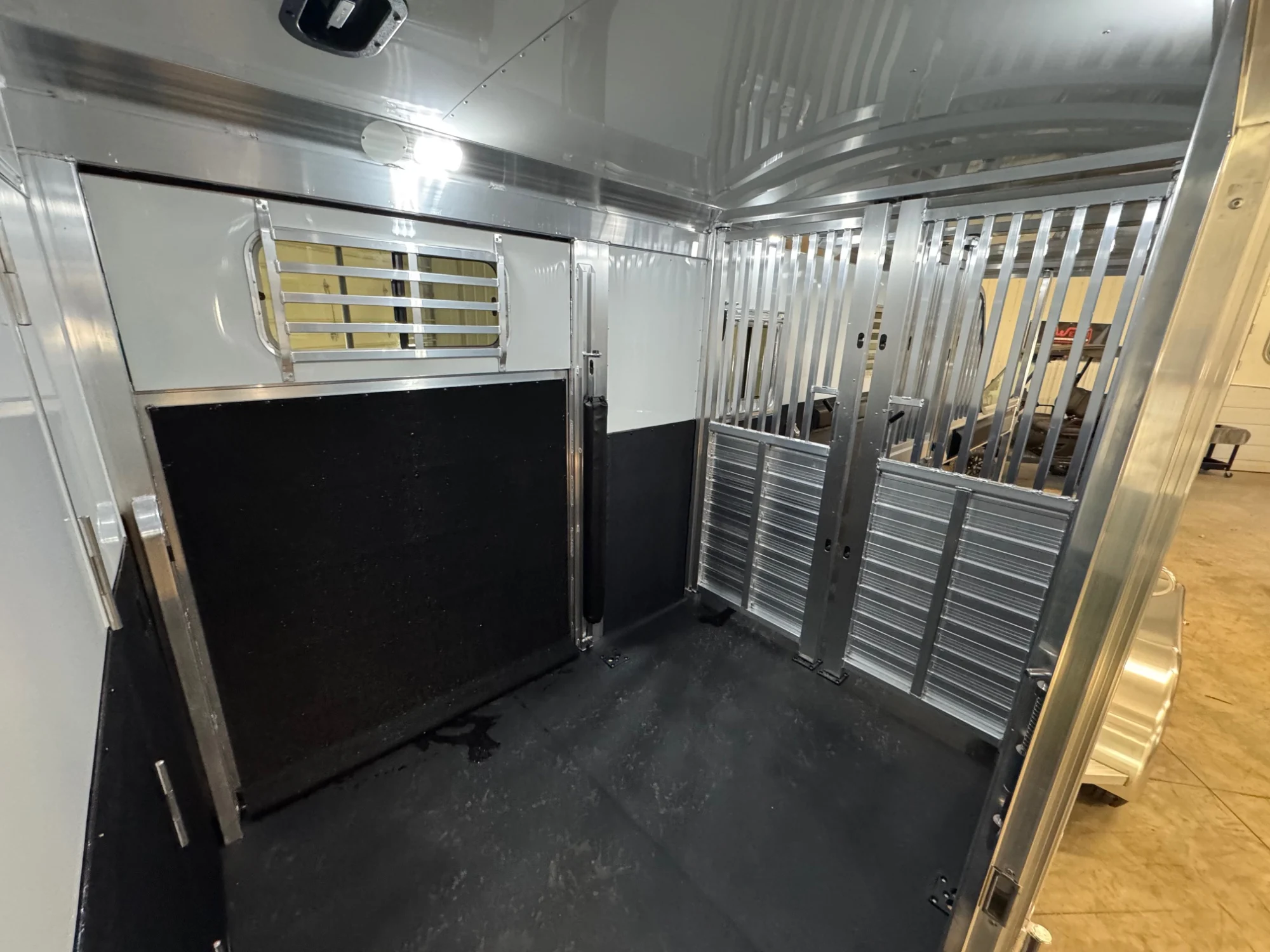| Features | 2 Box Stalls, 8' Tall, Aluminum Body, Aluminum Frame, Aluminum Slats, Dressing Room, Easy Lift Ramps, Easy Lift Side Ramp, Escape Door, Hydraulic Jack, Insulated Roof, Larger Side Windows, Quiet Ride Dividers, Saddle Racks, Side Load, Stainless Exterior Accents, Stud doors |