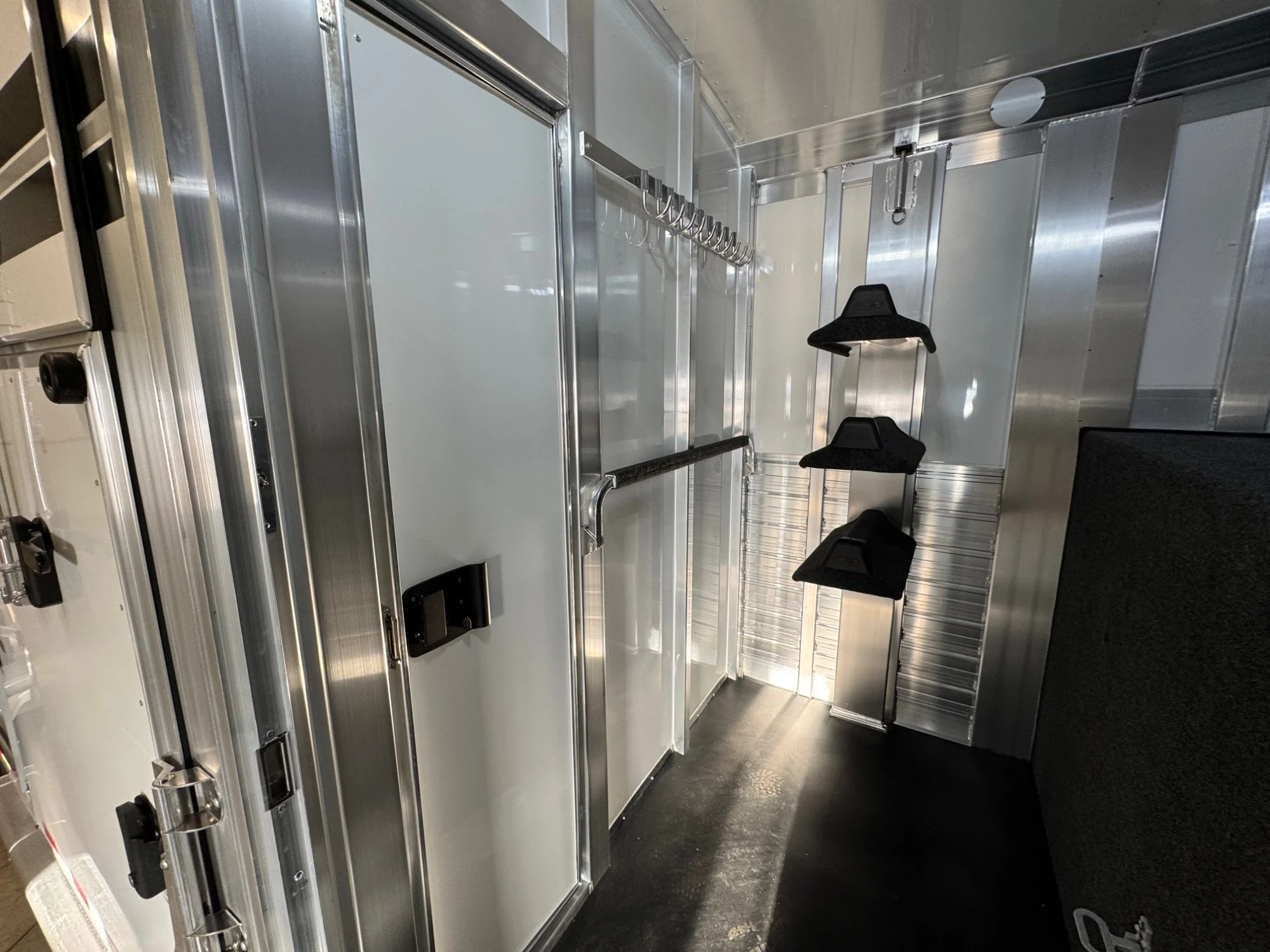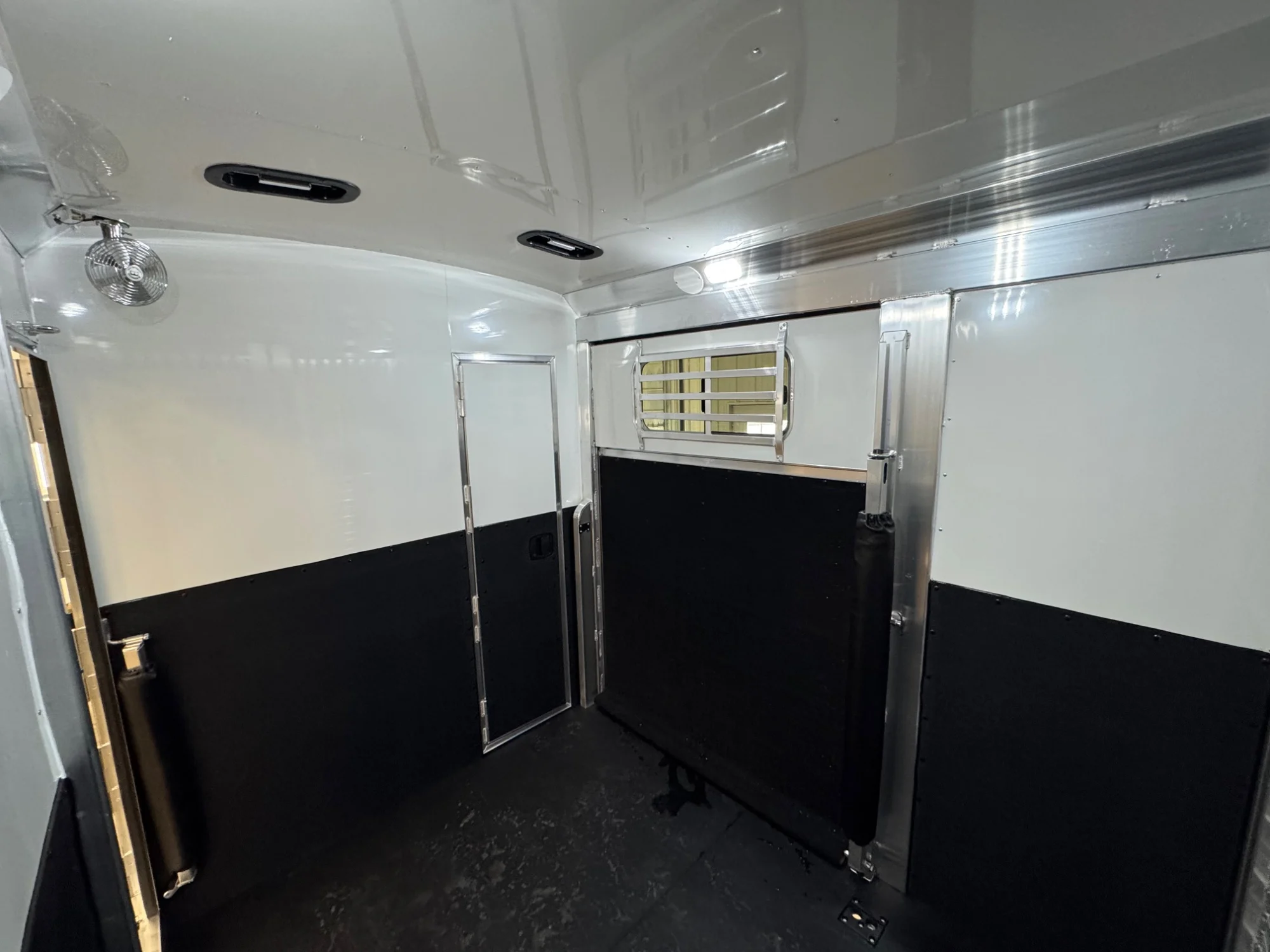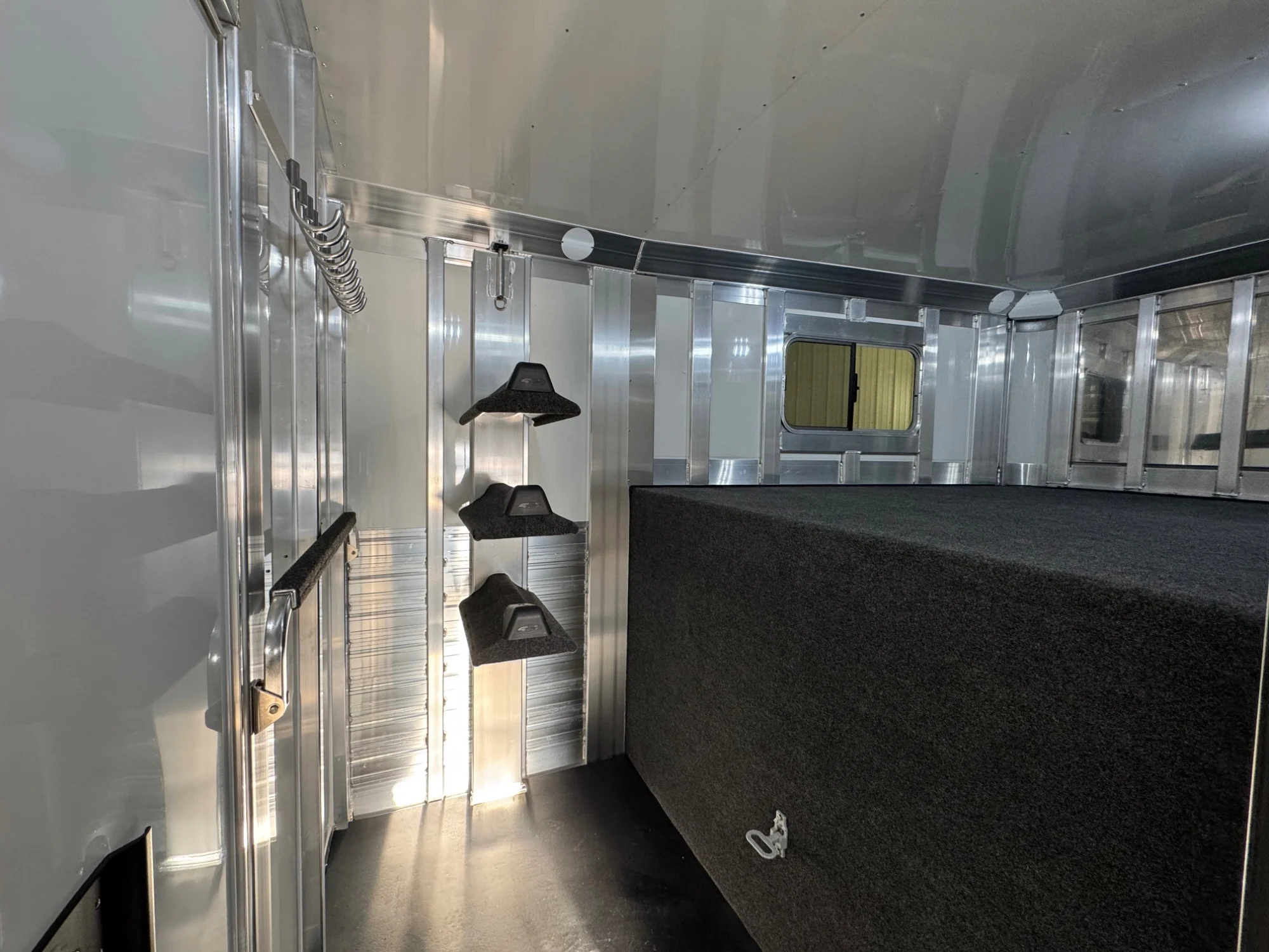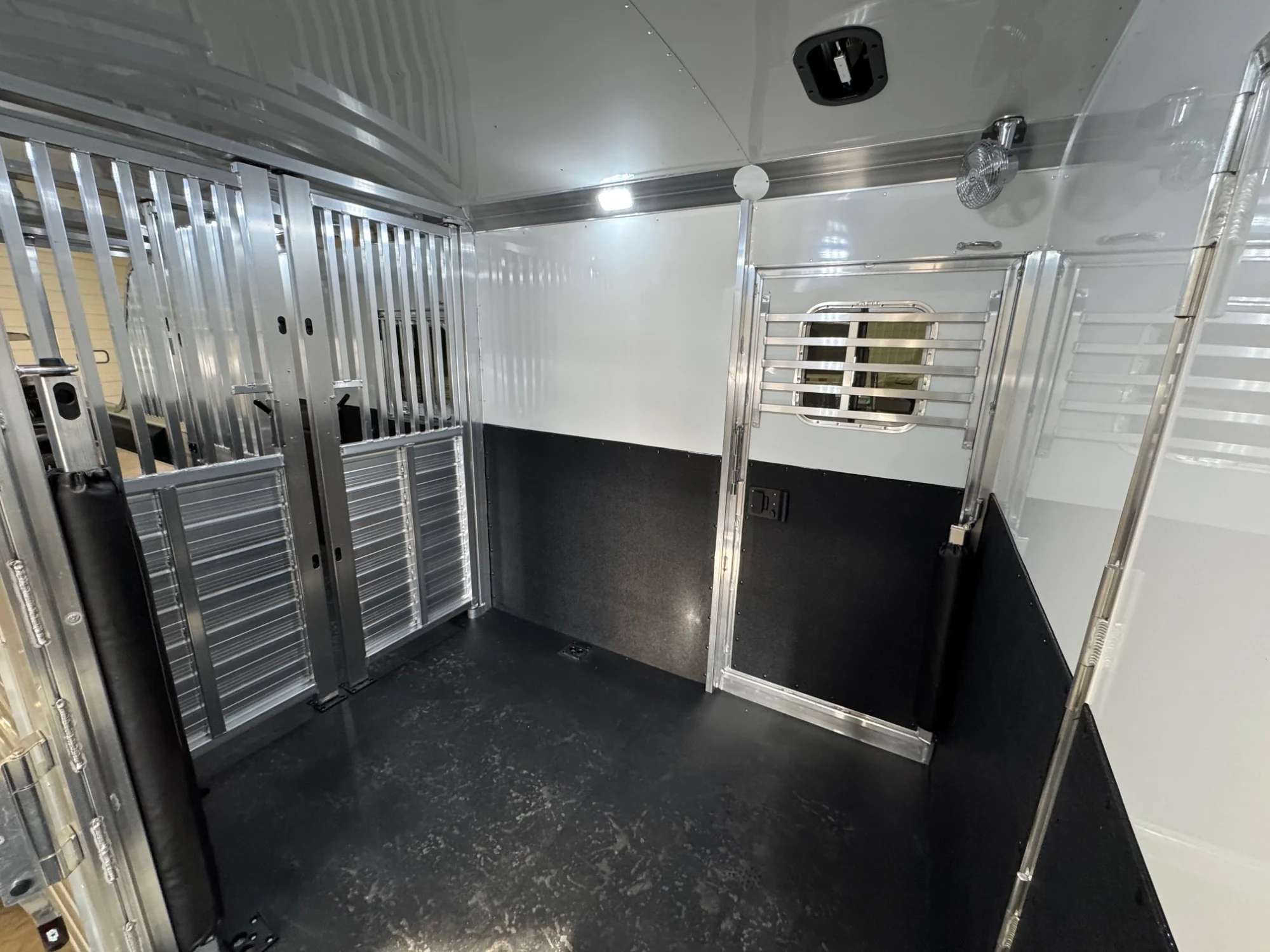 | Features | 2 Box Stalls, 8' Tall, Aluminum Body, Aluminum Frame, Aluminum Slats, Dressing Room, Easy Lift Ramps, Easy Lift Side Ramp, Escape Door, Hydraulic Jack, Insulated Roof, Larger Side Windows, Quiet Ride Dividers, Saddle Racks, Side Load, Stainless Exterior Accents, Stud doors |