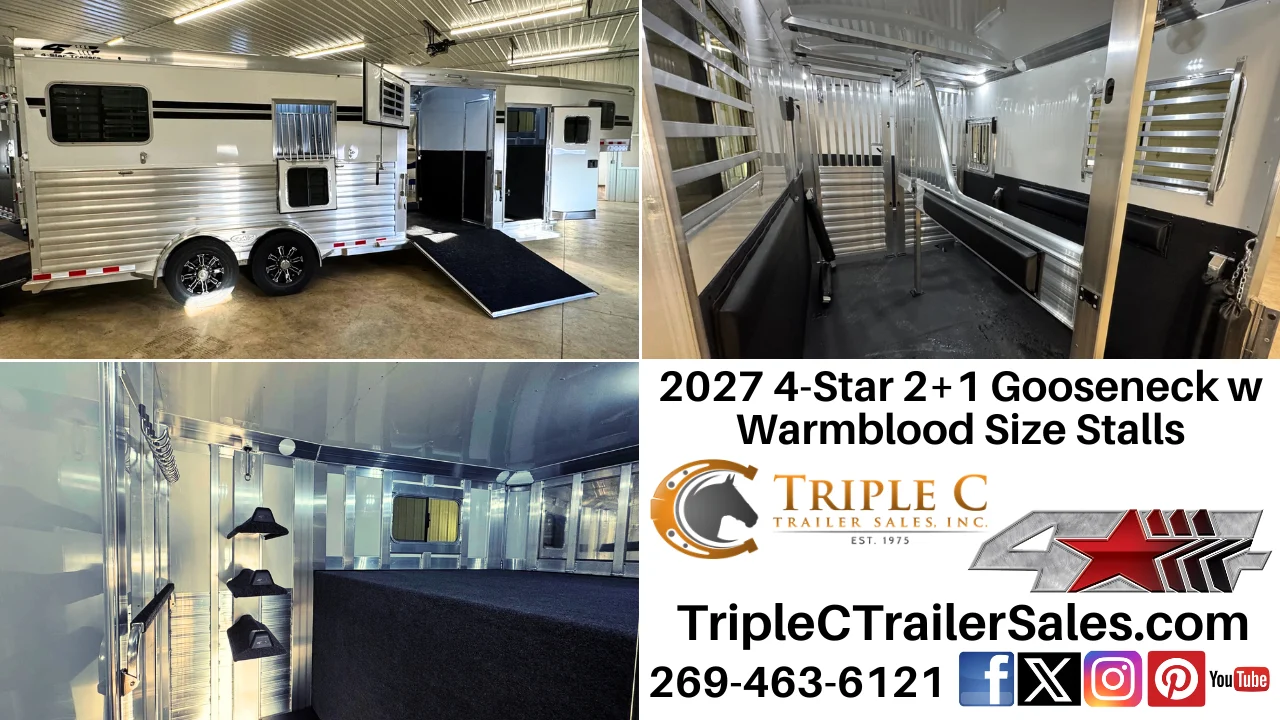 ID# TCT974 Come on out to Triple C Trailer Sales Inc at 9136 Hagar Shore Rd. Watervliet MI 49098 to see all of the horse trailers on our lot. Our inventory changes daily! Check out and view pictures of our entire 4-Star Trailers inventory online. WE CAN SHIP NATIONWIDE!