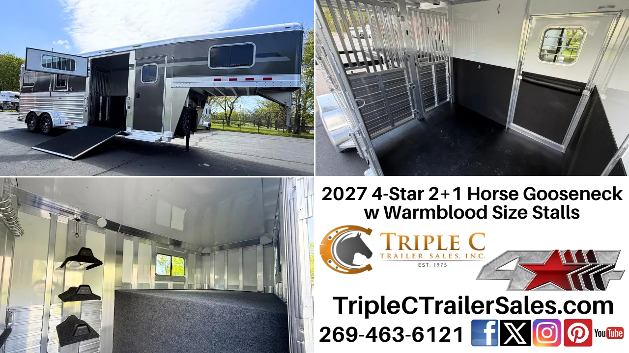 2027 4-Star 2+1 Horse Gooseneck w Warmblood Size Stalls2027 4-Star 2+1 Horse Gooseneck w Warmblood Size Stalls from Triple C Trailer Sales Inc.